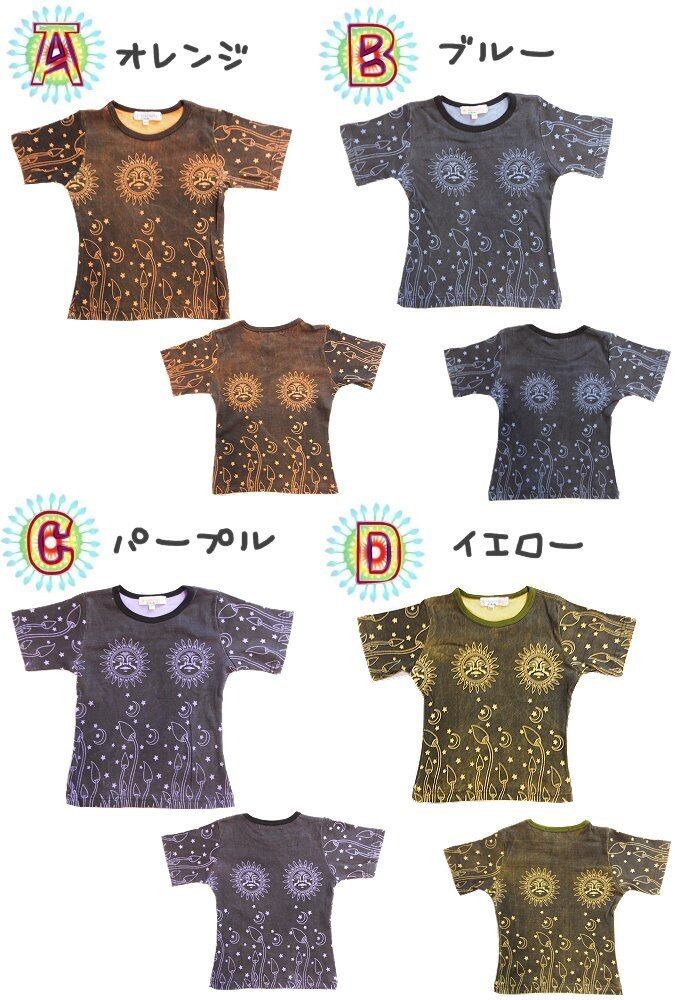 【80-140】【送料無料】太陽 と きのこ の Tシャツ(品番sp162)【月 星 ストレッチ コットン Tシャツベビー キッズ 子供服 エスニック ヒッピー アジアン】