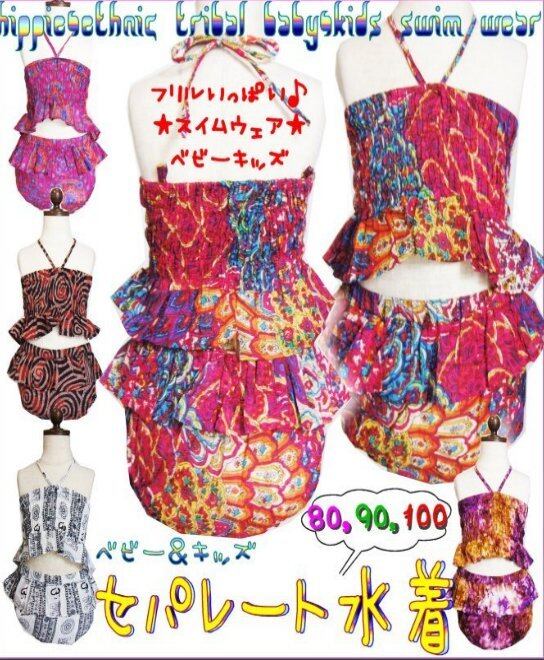 【80-100】エスニック ヒッピー柄 コットン 水着 セパレート セットアップ スウィムウェア 水遊び ビーチウェア(品番sp167)【ベビー キッズ 子供服 エスニック ヒッピー アジアン】