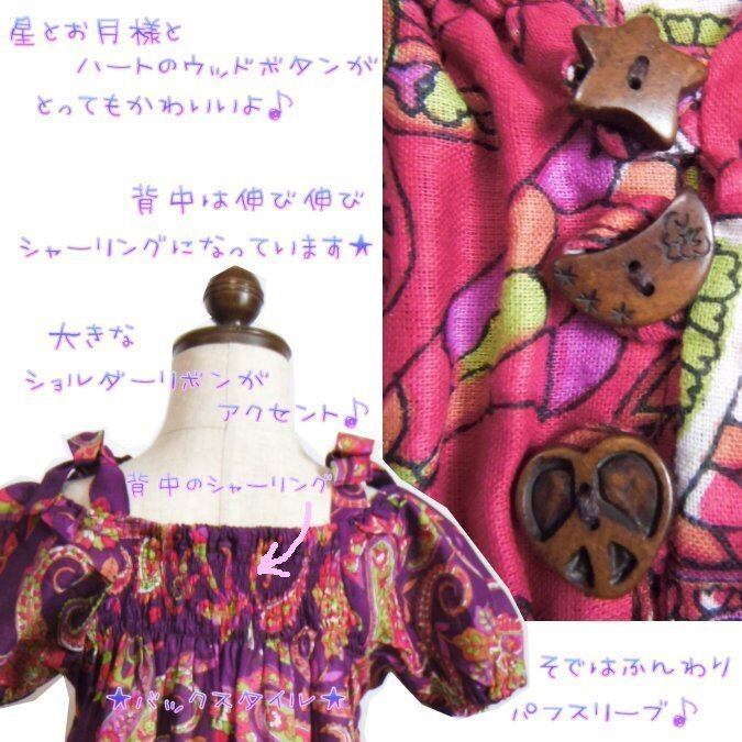 #ワンピース #肩リボン #パフスリーブ #エスニック #ペイズリー