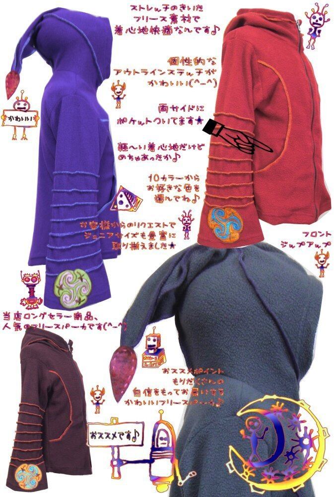 #フリース #パーカー #ジャケット #アウター #とんがりフード #フェアリー #フレア袖 #トライバル #刺繍