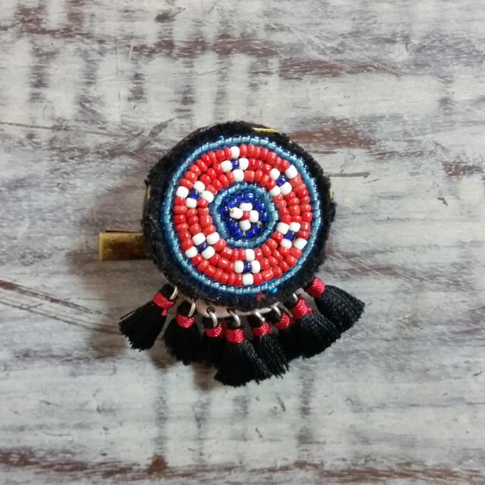 アフガンのビーズや刺繍が施されたアンティーク古布ワッペンをリメイクして作ったブローチです。