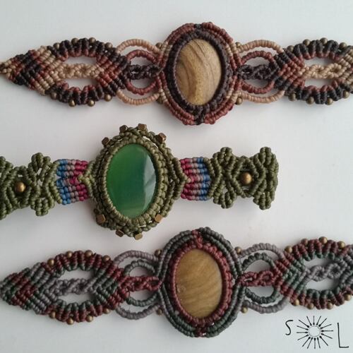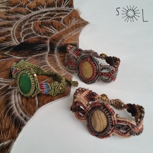 【ブレス】 マクラメ編みハンドメイド ブレスレット(品番sp306)【トライバル オリエンタル 天然石】