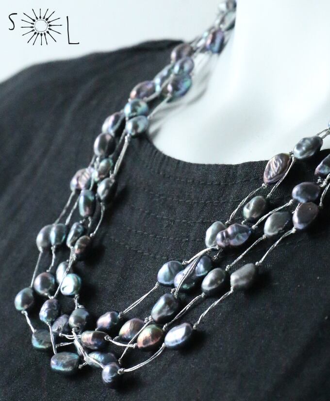 淡水パール【ダークグレー 5連 ネックレス】(品番sp325)【フォーマルにも】