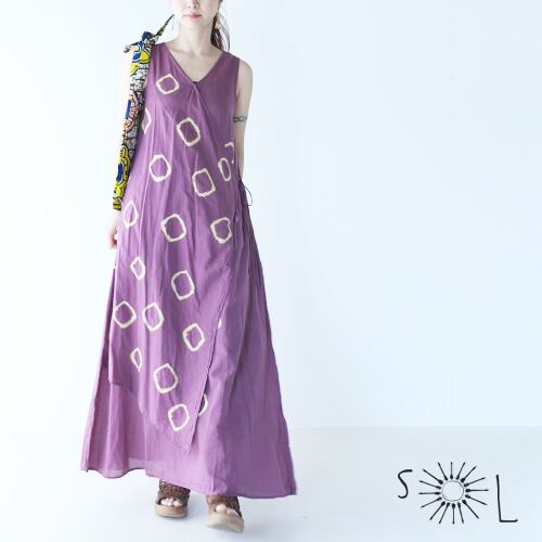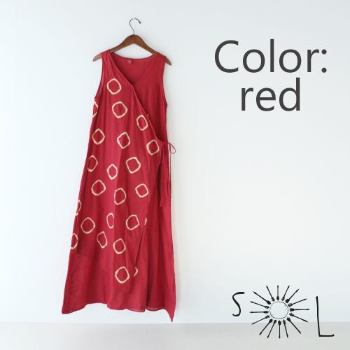 【ワンピース】絞り染め レイヤード カシュクール風 ワンピース【大人エスニック ナチュラル】【3カラー:purple,red,sage】(品番sp537)