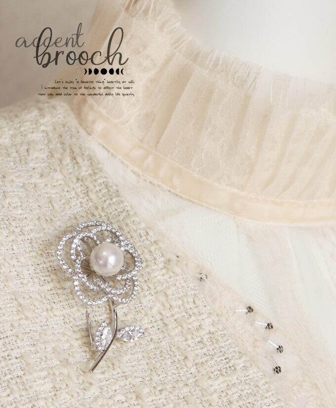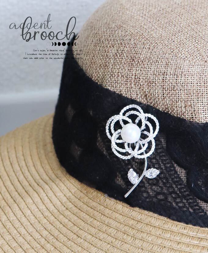 パールとビジューの花ブローチ/差し色/北欧/煌めくブローチ/かわいいブローチ/銀/シルバー/上品/フォーマル/入学式/入園式/卒業式/発表会/アクセント/ビジュー/花/pb707