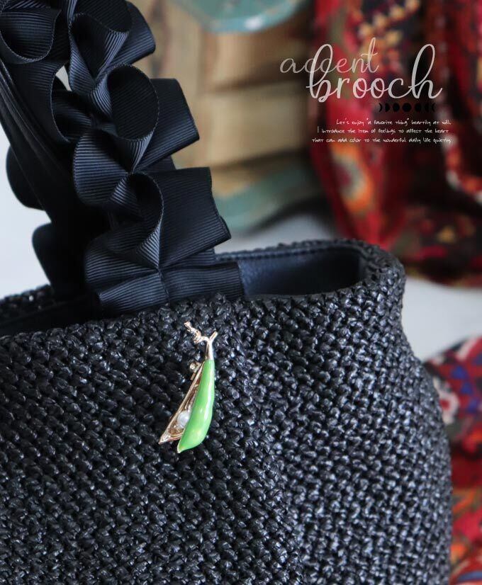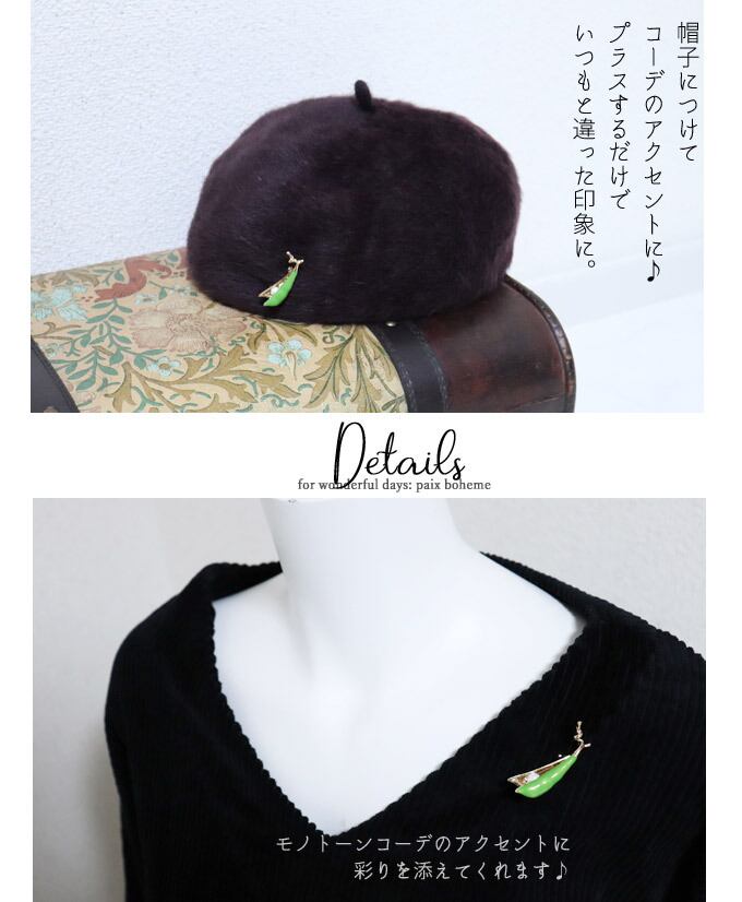 パール枝豆ブローチ/差し色/北欧/煌めくブローチ/かわいいブローチ/金/ゴールド/豆/えだまめ/アクセント/ビジュー/植物/パール/pb715