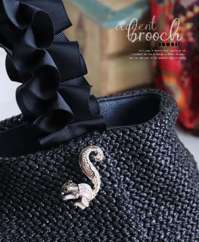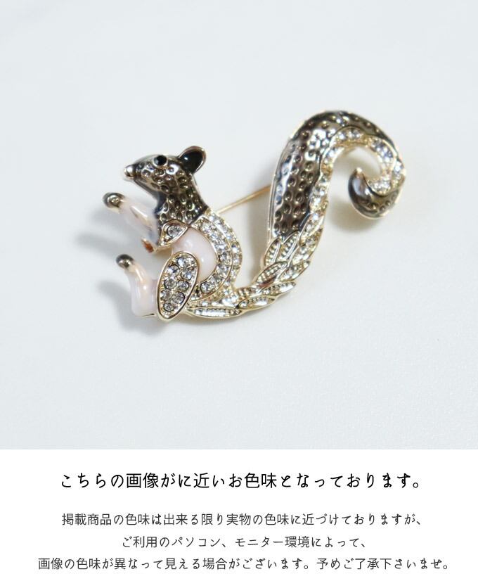 りすブローチ/差し色/北欧/煌めくブローチ/かわいいブローチ/金/ゴールド/りす/動物/アクセント/ビジュー/いきものブローチ/動物ブローチ/pb716
