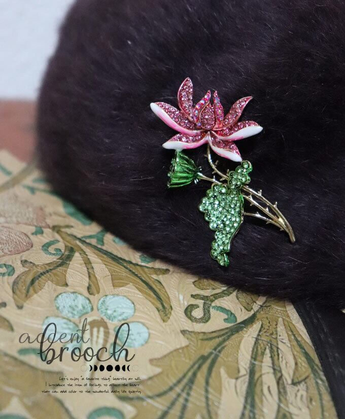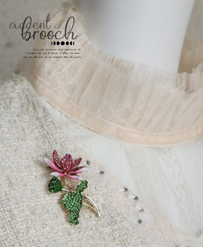 ハスの花ブローチ/差し色/北欧/煌めくブローチ/かわいいブローチ/金/ゴールド/ロータス/蓮/アクセント/ビジュー/自然モチーフブローチ/植物/綺麗/上品/フォーマル/カジュアルpb727