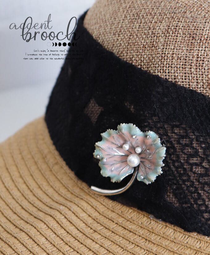 パールと葉ブローチ/差し色/北欧/煌めくブローチ/かわいいブローチ/銀/シルバー/アクセント/ビジュー/自然モチーフブローチ/植物/綺麗/上品/凛とした/カジュアル/パールpb742