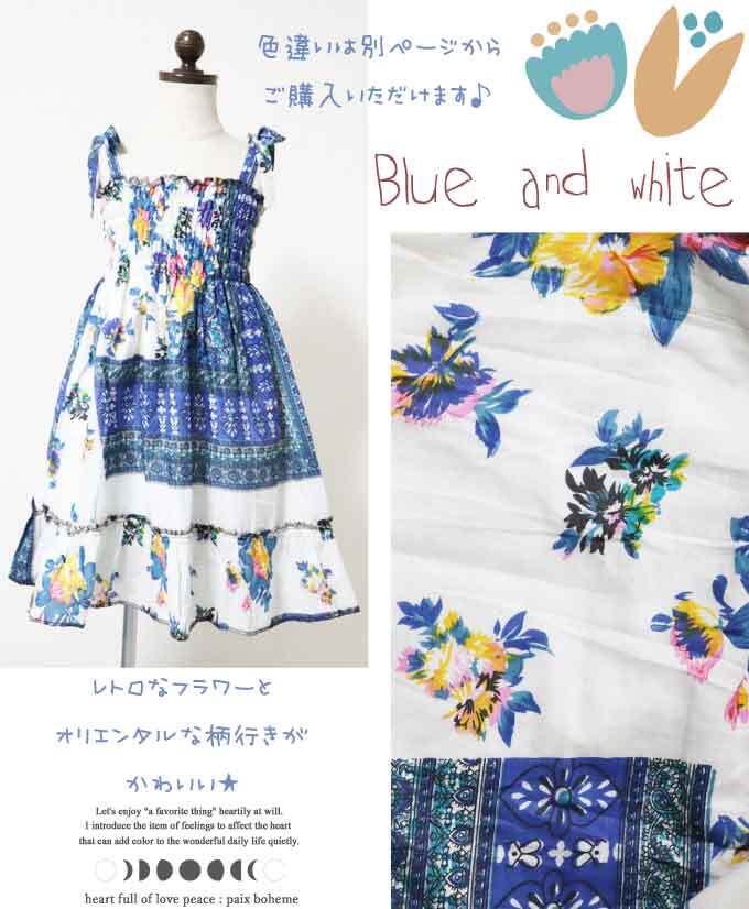 #ワンピース #可愛い #コットン #カラフル #花モチーフ #ノースリーブ #肩リボン #ベビー #キッズ #子供服 #エスニック #ヒッピー #アジアン #ナチュラル