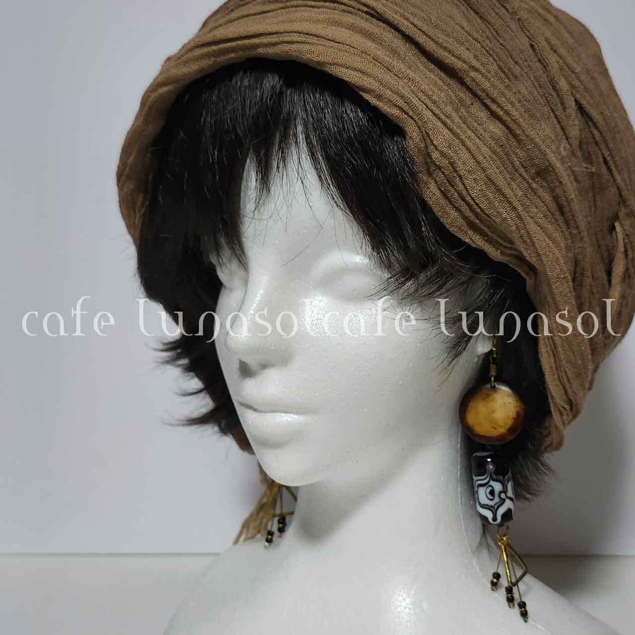 ブラウン×ベージュの丸いモチーフはアフリカ、ケニアのバッファローボーンを