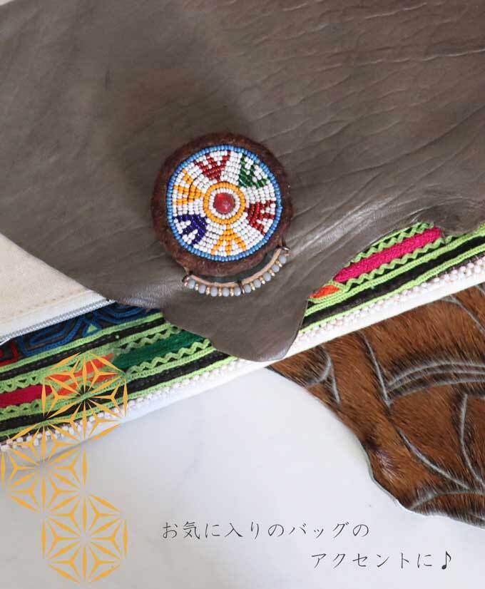 #ブローチ #バッヂ #ハンドメイド #リメイク #アフガン #アンティーク #ミラーワーク #刺繍 #ビーズワーク #ヴィンテージ #オリエンタル #エスニック #アジアン #花デザイン #ビーズ装飾 #一点もの #アクセント #差し色 #バッジ #クリップブローチ