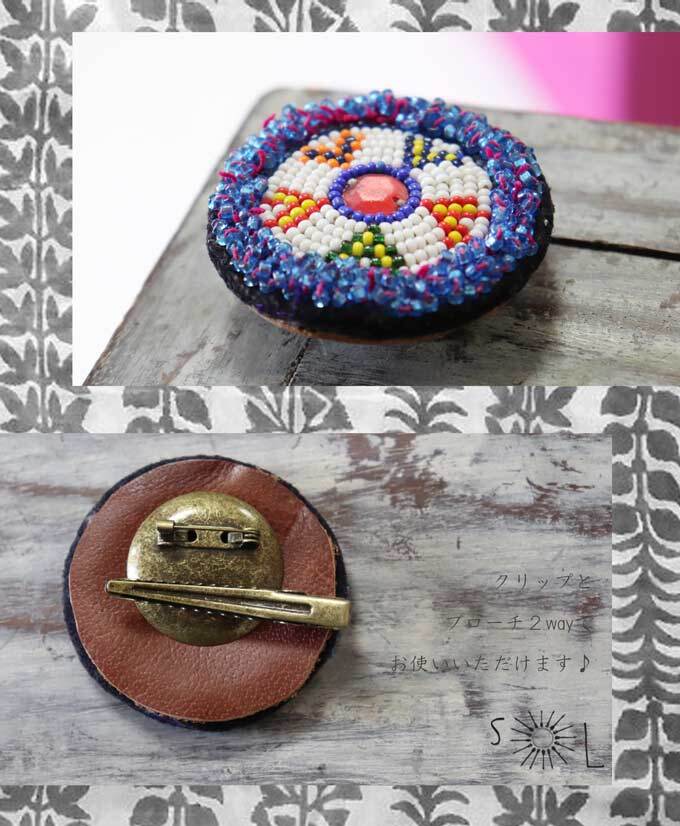 #ブローチ #バッヂ #ハンドメイド #リメイク #アフガン #アンティーク #ミラーワーク #刺繍 #ビーズワーク #ヴィンテージ #オリエンタル #エスニック #アジアン #花デザイン #ビーズ装飾 #一点もの #アクセント #差し色 #バッジ #クリップブローチ
