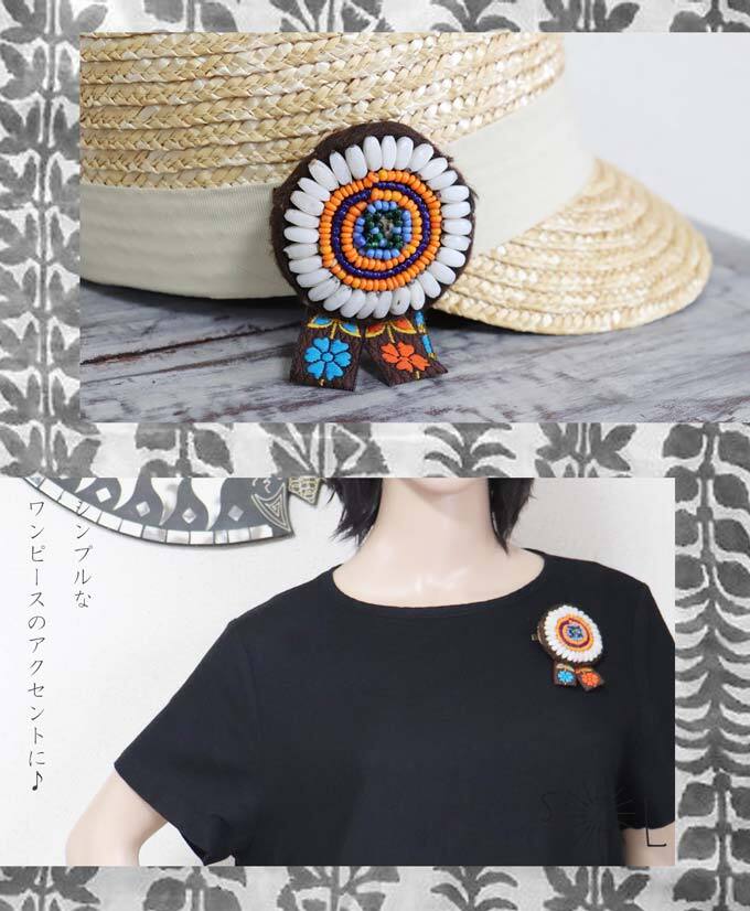 #ブローチ #バッヂ #ハンドメイド #リメイク #アフガン #アンティーク #ミラーワーク #刺繍 #ビーズワーク #ヴィンテージ #オリエンタル #エスニック #アジアン #花デザイン #ビーズ装飾 #一点もの #アクセント #差し色 #バッジ #クリップブローチ