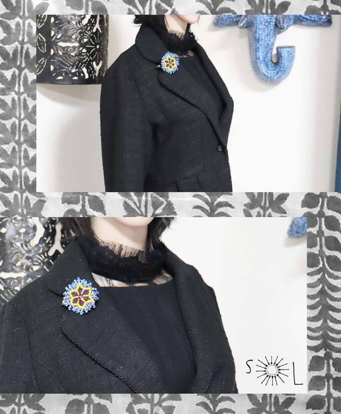 #ブローチ #バッヂ #ハンドメイド #リメイク #アフガン #アンティーク #ミラーワーク #刺繍 #ビーズワーク #ヴィンテージ #オリエンタル #エスニック #アジアン #花デザイン #ビーズ装飾 #一点もの #アクセント #差し色 #バッジ #クリップブローチ