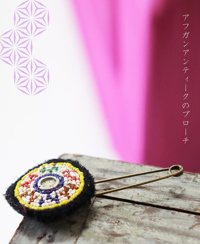 アフガンのビーズや刺繍が施されたアンティーク古布ワッペンをリメイクして作ったブローチです。
