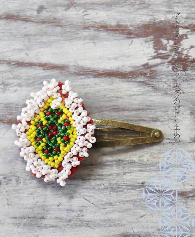 #ヘアピン #バッヂ #ハンドメイド #リメイク #アフガン #アンティーク #ミラーワーク #刺繍 #ビーズワーク #ヴィンテージ #オリエンタル #エスニック #アジアン #花デザイン #ビーズ装飾 #一点もの #アクセント #差し色 #バッジ #ヘアアクセサリー