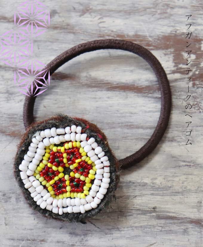 アフガンのビーズや刺繍が施されたアンティーク古布ワッペンをリメイクして作ったヘアゴムです。
