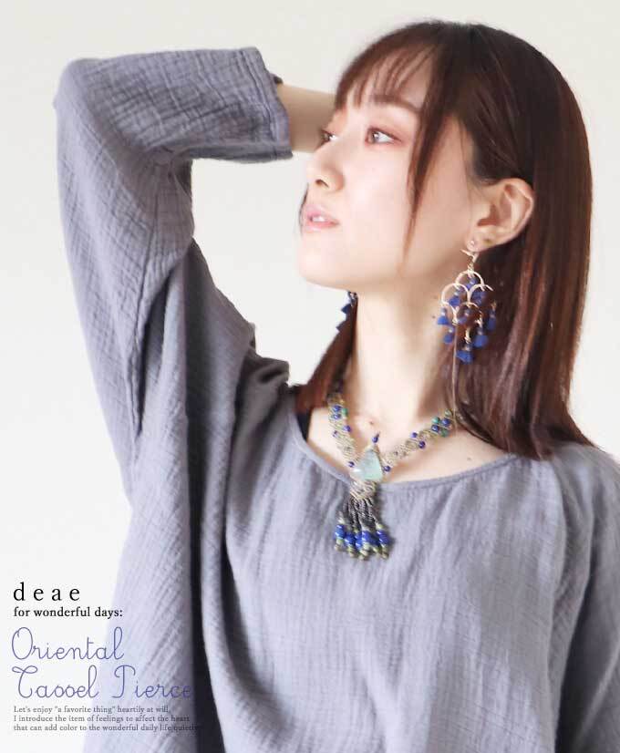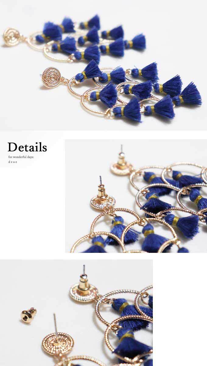 ピアス【ブルー】オリエンタルな風合い 揺れるタッセルが美しい 煌めき揺れる 奇麗め 大人カジュアル