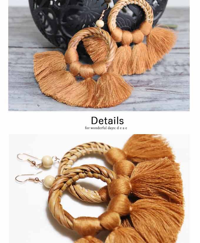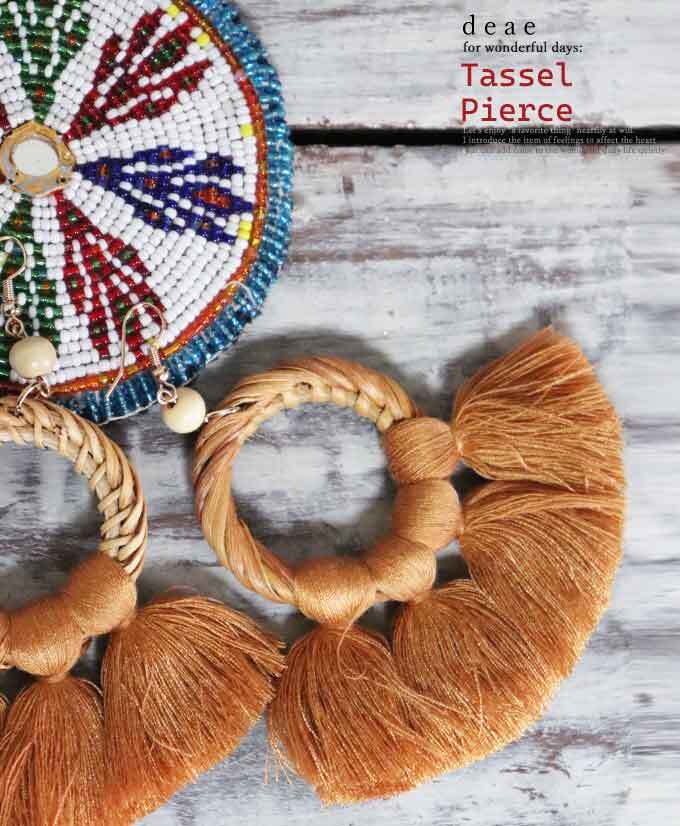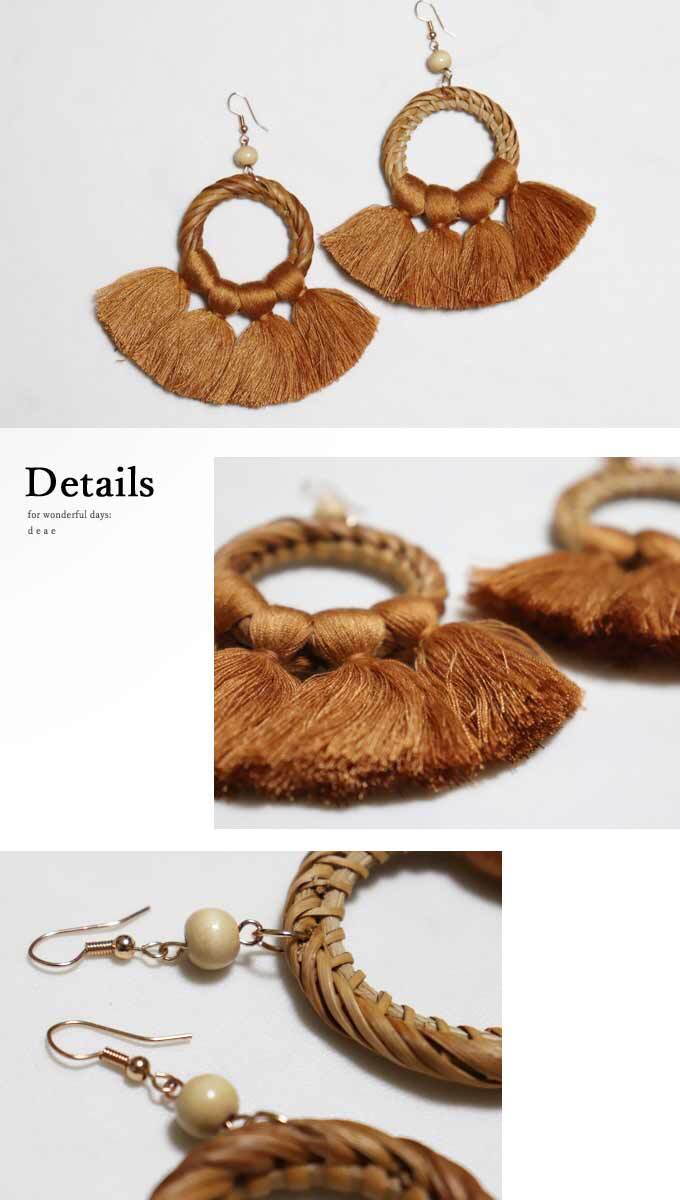 ピアス【ベージュ】DEAE ぷっくりタッセルとラタンの輪ピアス 大人ナチュラル カジュアル