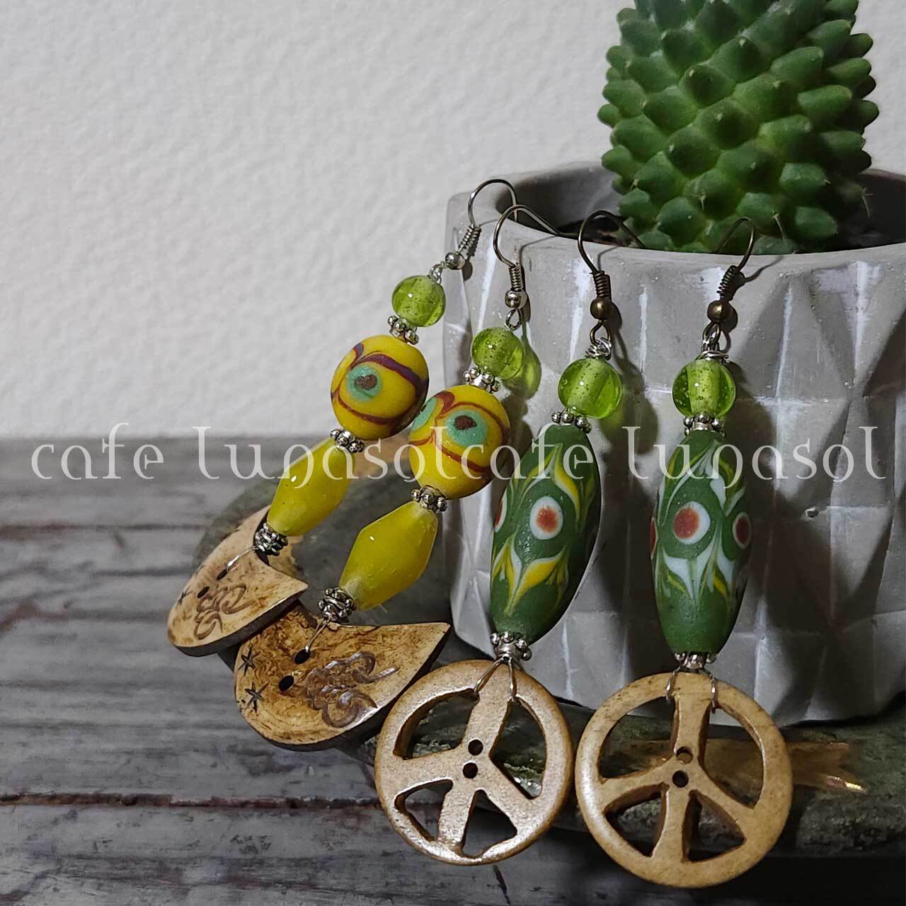 #ピースマーク #月 #オリエンタル #ボーンビーズ #差し色ピアス #アクセントピアス
