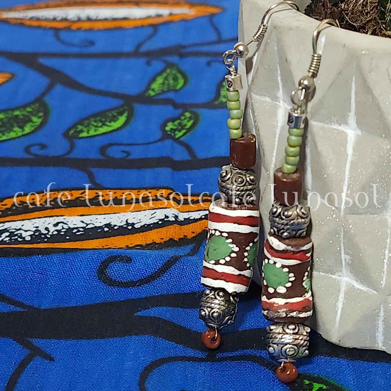 #アフリカンとんぼ玉 #トライバル #オリエンタル #アフリカンアクセサリー #差し色ピアス #アクセントピアス