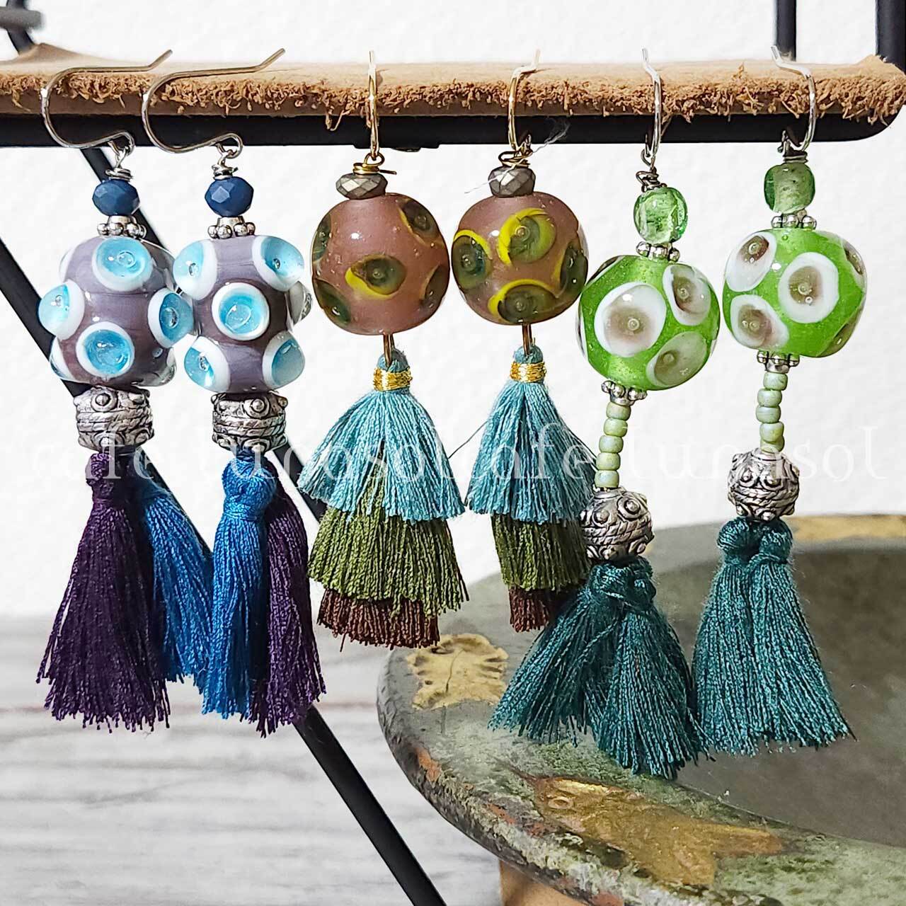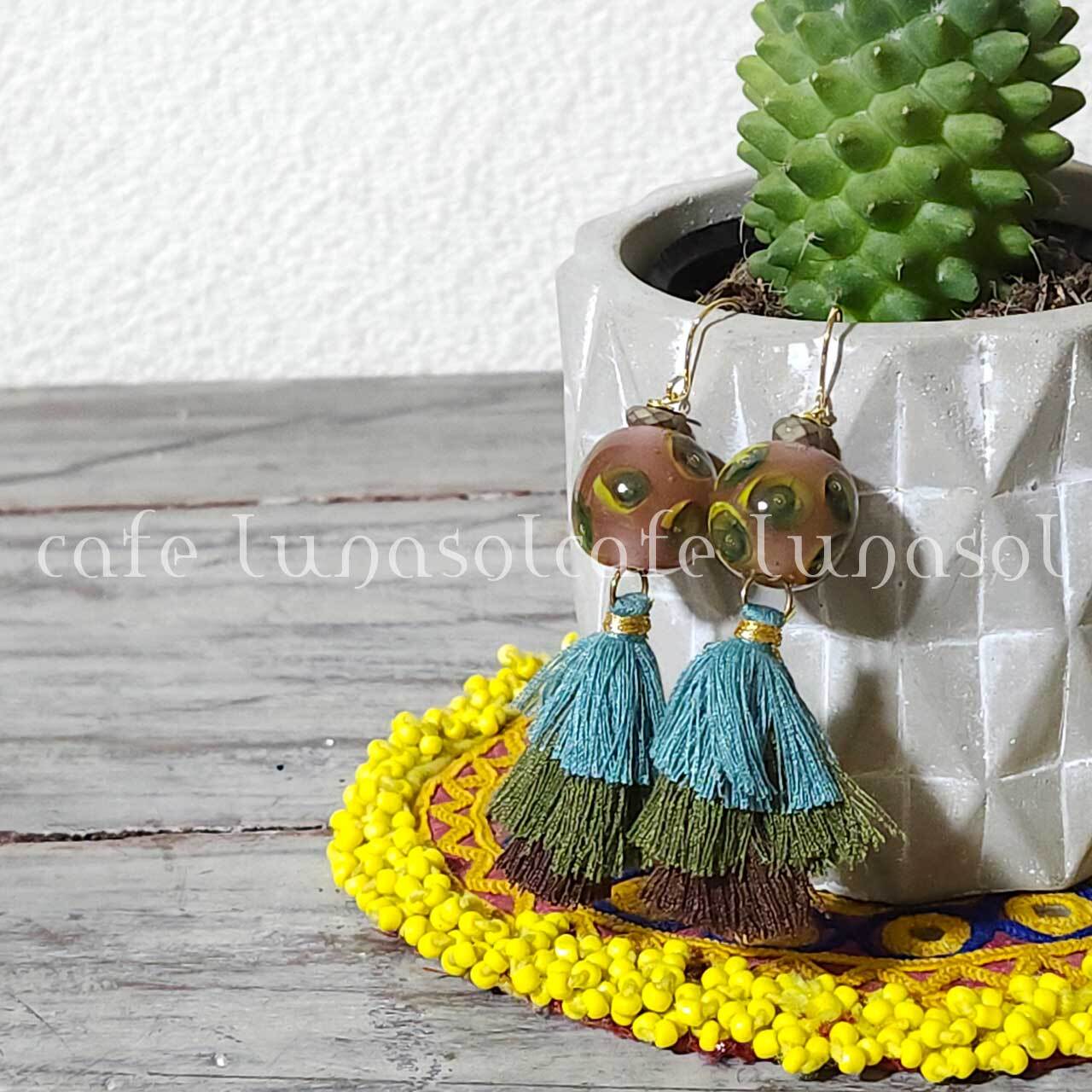 #ピアス #ガラスビーズ #とんぼ玉 #インドネシア #ハンドメイド