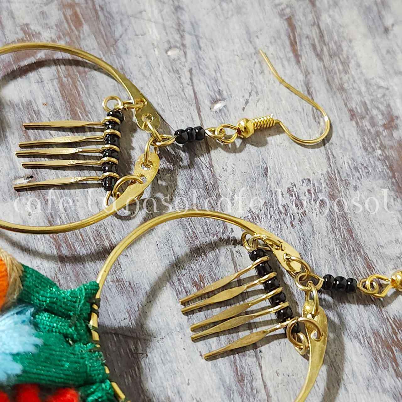 ケニアのビジューとオリエンタルな刺繍モチーフ ピアス 差し色ビーズのピアス 彩り アクセント