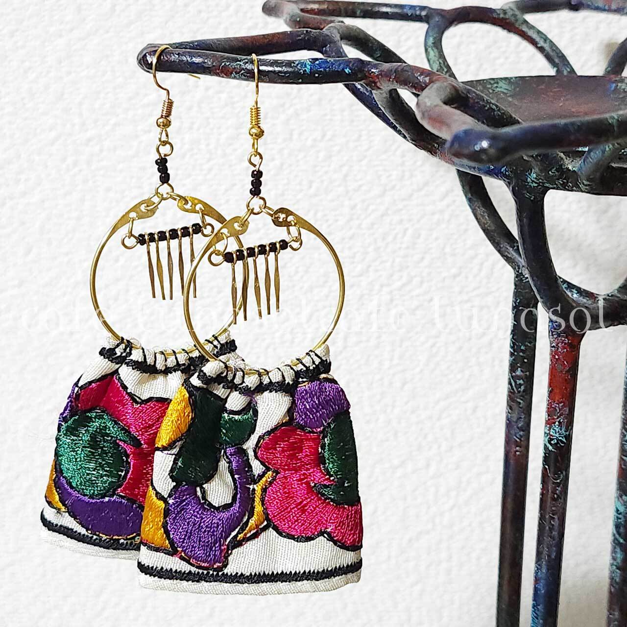 #オリエンタル刺繍 #エスニック刺繍 #オリエンタル #刺繍 #差し色ピアス #アクセントピアス