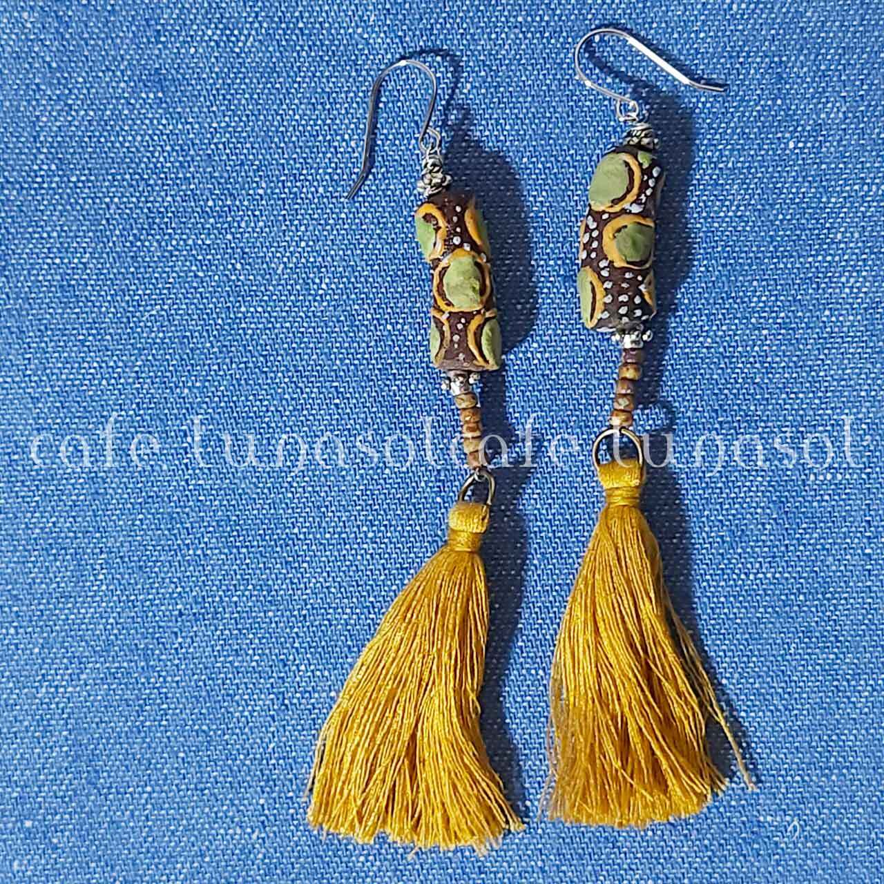 とんぼ玉のピアス アフリカのガラスビーズのピアス ハンドメイド タッセル 彩り アクセント エスニック トライバル アフリカン