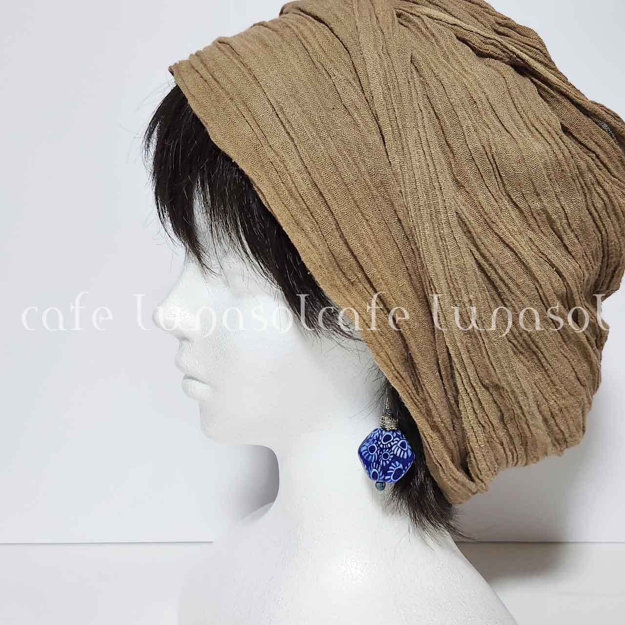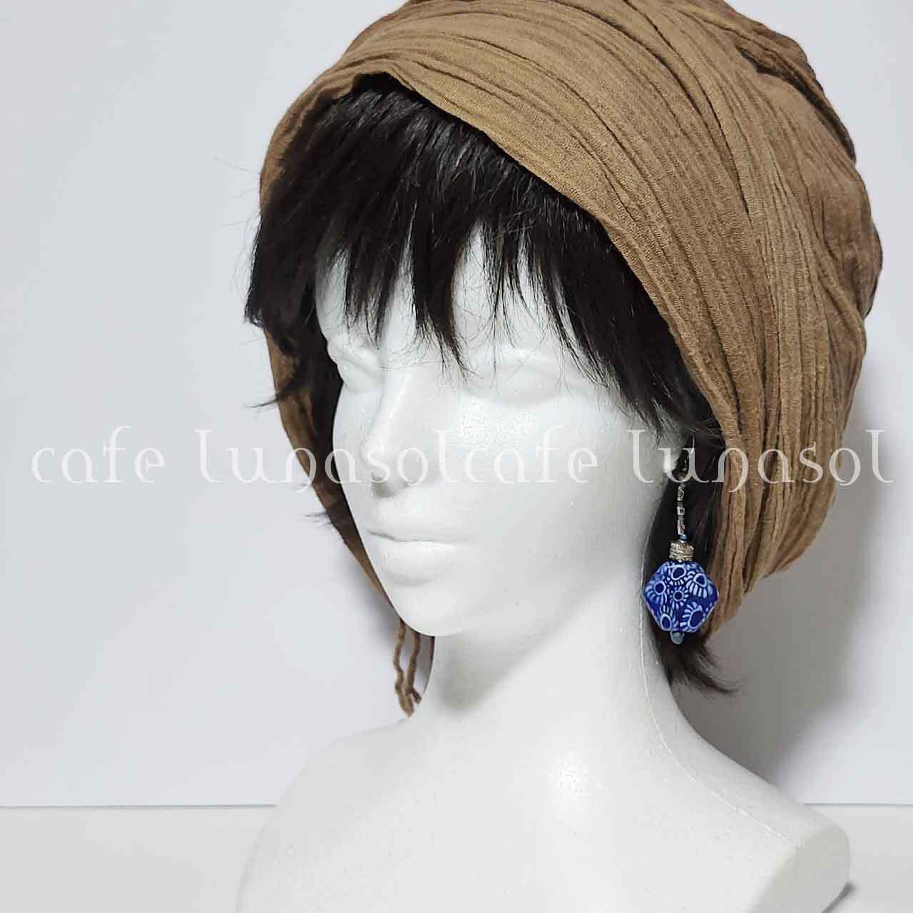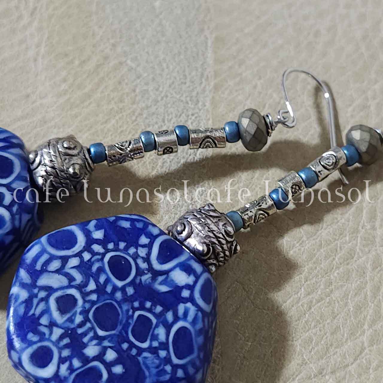 使用したバティック模様の多角形カッティングのとんぼ玉ビーズが程よい個性を添えてくれるピアスです^^
